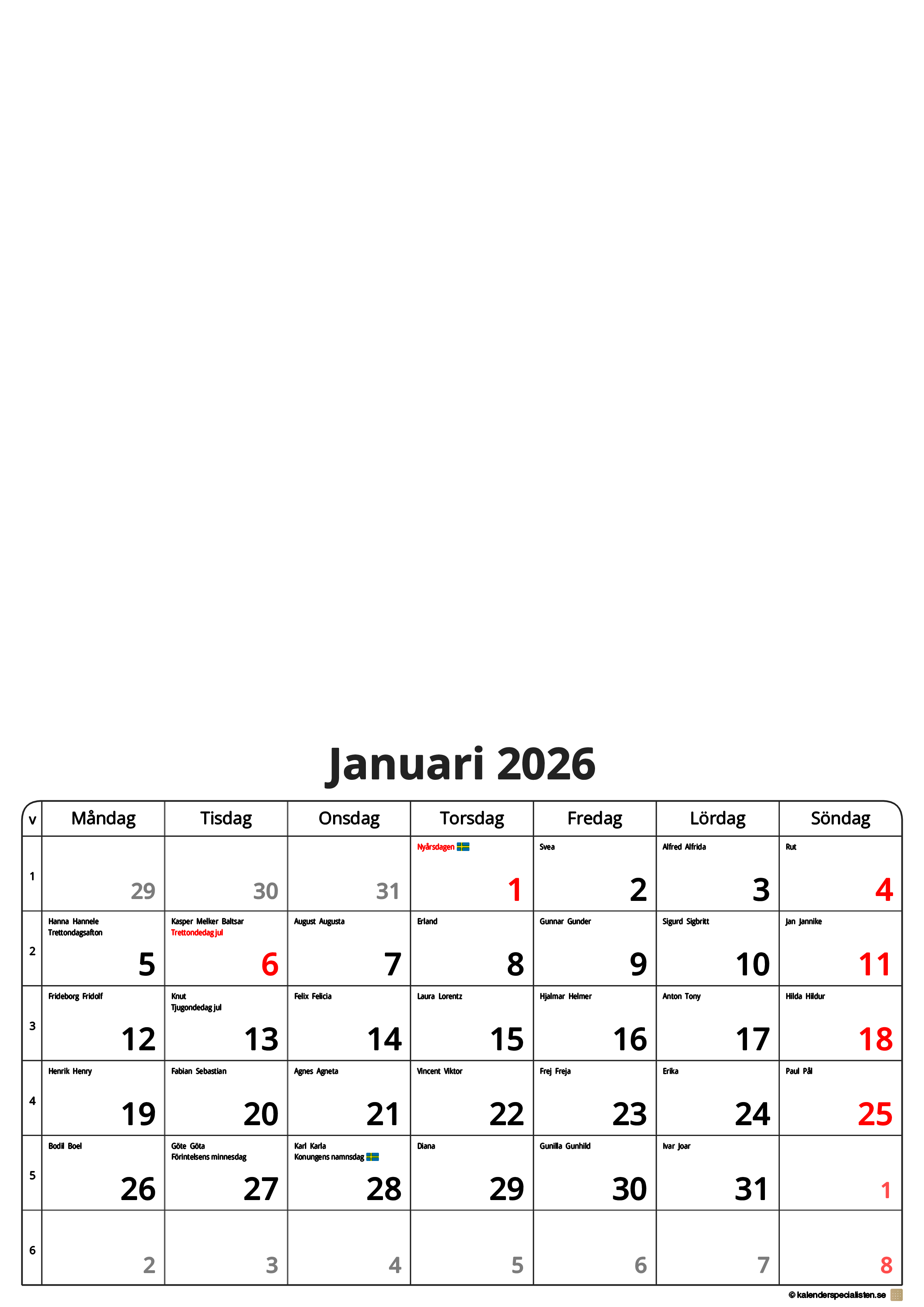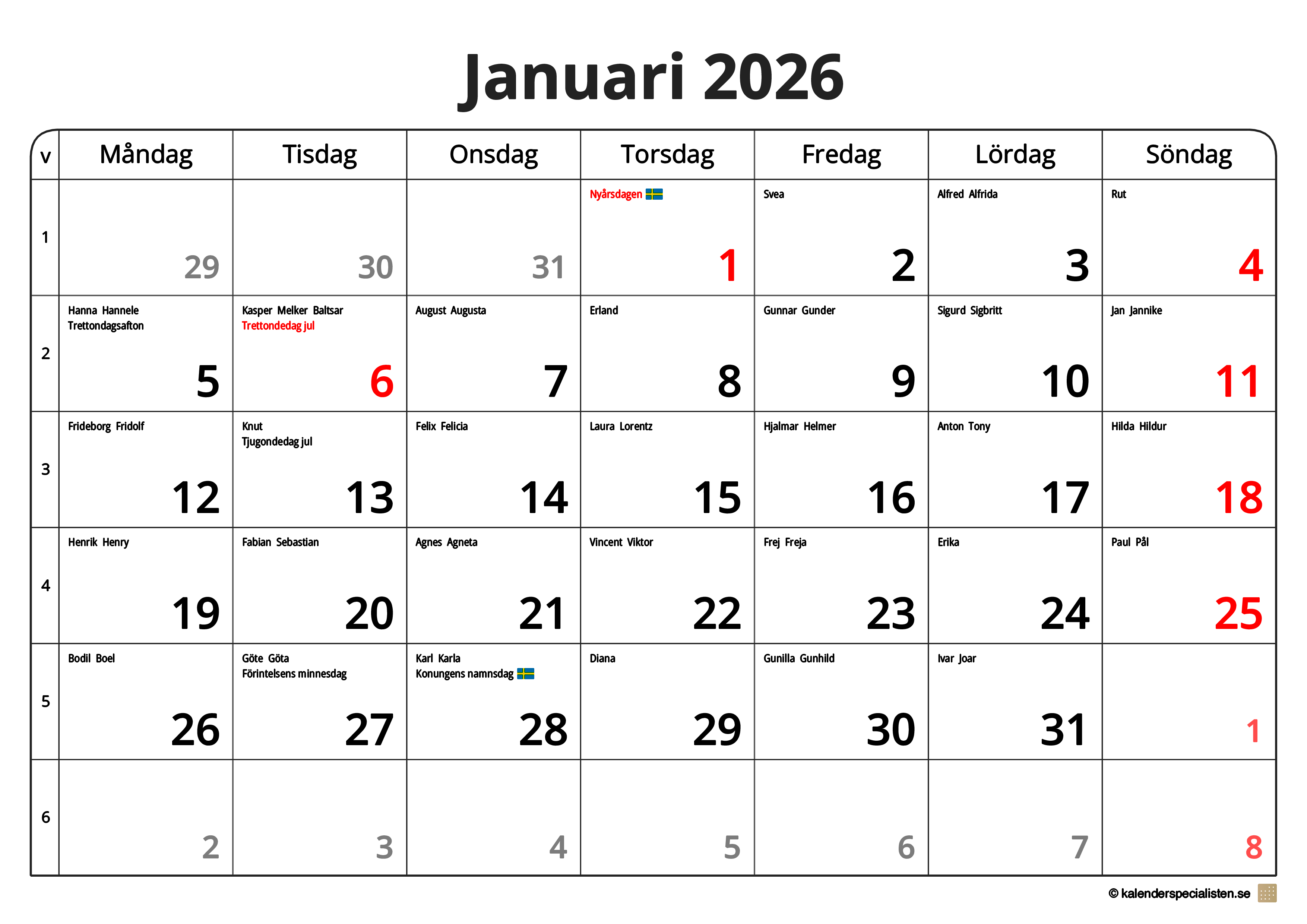 Vi erbjuder både gratis kalendrar att ladda ner och en digital kalender. Där hittar du praktiska sidor som hjälper dig att hålla koll på dagens datum, namnsdagar och mycket mer: