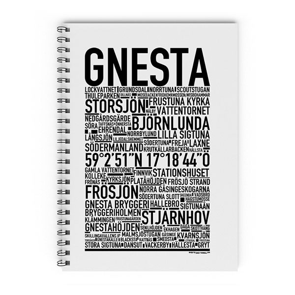 Skrivbok Wallstars Gnesta En av våra snygga olinjerade skrivböcker i serien Svenska städer med motiv gjorda av David Thornell på Wallstars. Perfekt för anteckningar, skisser och givetvis som present.