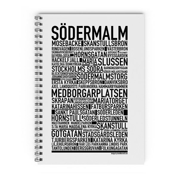 Skrivbok Wallstars Södermalm En av våra snygga olinjerade skrivböcker i serien Svenska städer med motiv gjorda av David Thornell på Wallstars. Perfekt för anteckningar, skisser och givetvis som present.